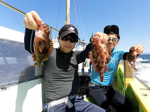 この日の結果は、13~26cmのカサゴ27~75匹(2番73匹、3番51匹)と絶好調。ただし、トップの人はリリース50匹で良型厳選25匹のキープ。他の釣り人も同様で、皆さん良型キープは20~30匹だった。新明正義船長も、「今日も陽気が良くて釣りやすかったですね。小型のカサゴのリリースありがとうございました。中型主体に良型も多数交じりお土産十分で絶好調!真夏の暑い間は13時頃帰港の“ショート”出船となります。誰もが楽しめるカサゴ釣りに是非遊びに来てください」。夏休みは気楽に楽しめるカサゴに癒されてはいかがだろうか。