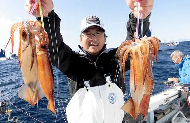神奈川県・久里浜沖のスミイカ、寒さ吹き飛ばす大型続出!